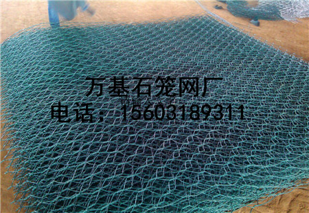 (3)镀锌钢丝包塑:优质低碳钢丝,在钢丝的表面包一层PVC保护层,再编织成各种规格的六角网。这层PVC保护层将会大大增加在高污染环境中的保护,并且通过不同颜色的选择,使其能和周围环境融合。