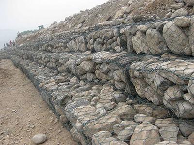 石笼网要按照规范规范制作:垫层厚度自100毫米到300毫米,笼高自0.5米到1米,笼长和笼宽自1米到4米。石笼网网格的标准从60X80毫米到120X150毫米。编网用的铁丝直径为2毫米至4毫米。铁丝可为镀锌的或者是涂有聚氯乙烯,网格越大,所用的钢丝就越粗。较粗的铁丝用在边沿的周围,在收顶时与把各个笼绑紧在一起至少应象绑扎石笼网那样安定经用。假定各部分绑扎恰当,则可添加结构的稳定性。有许多网格收边的方法,假定将石笼网仅钩在笼边而不编织在笼边,即易于松动。